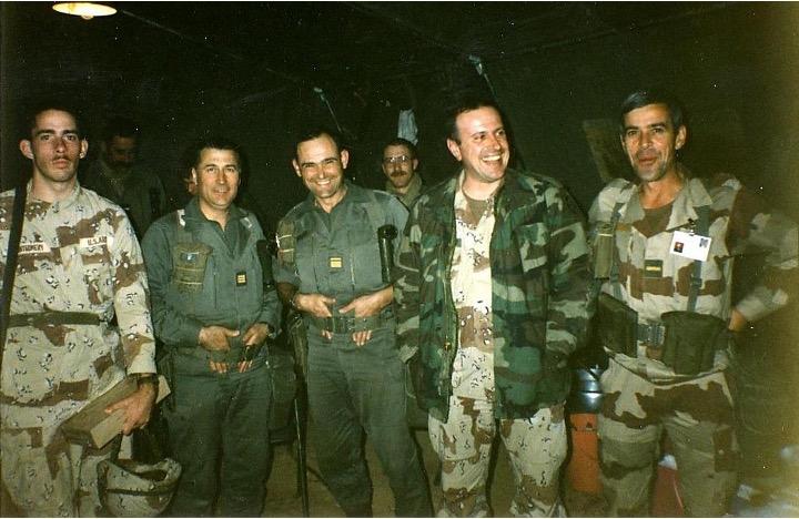 23 Février 1991 – Mission au PC DAGUET - embarquement à RAFHA (CTAC 18th CORPS) au 1er plan LTC Bourgain (promo Linares) – Colonel DUREAU sur le retour au CO DAGUET